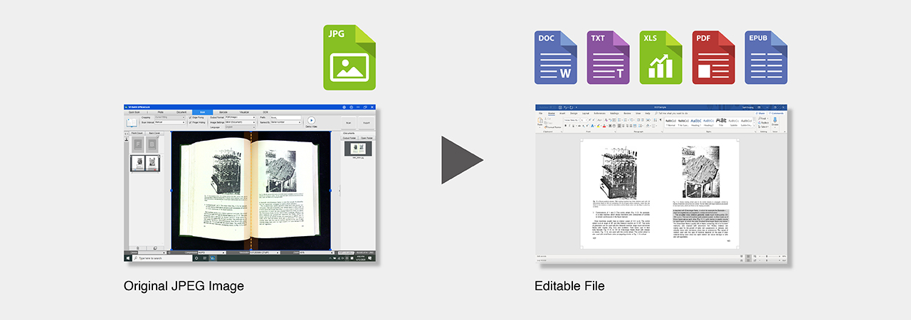 Easily create searchable PDFs and editable Word, Excel, or text files with advanced OCR technology.