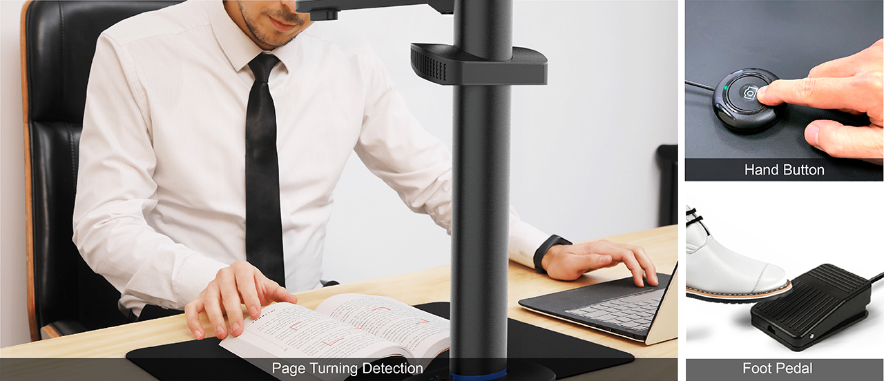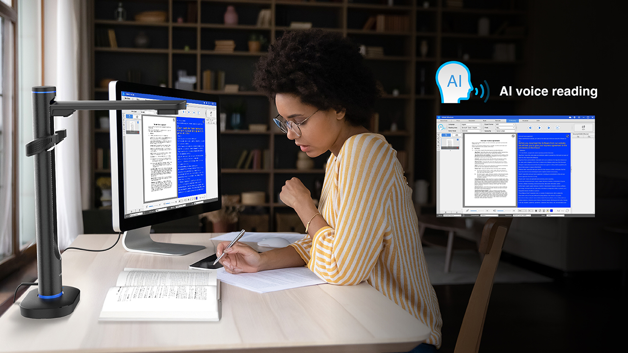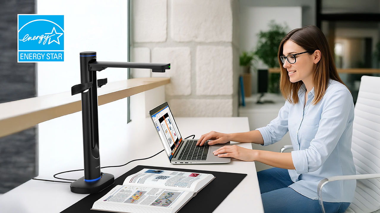 With dual Sony 48MP sensors, it captures books and documents up to A2 size and can switch to A3 when needed. Powered by advanced AI, it automatically flattens curved pages, removes fingers, and purifies backgrounds, so you can stay focused on your work. With its exclusive OfficeCam scanning software, it allows you to scan and convert documents into searchable PDFs or editable Word, Excel, and text files in seconds — and even reads documents aloud with natural, human-like voices through text-to-speech technology. Bright 600 Lux lighting keeps every image vivid, while the Energy Star-certified design saves power intelligently.