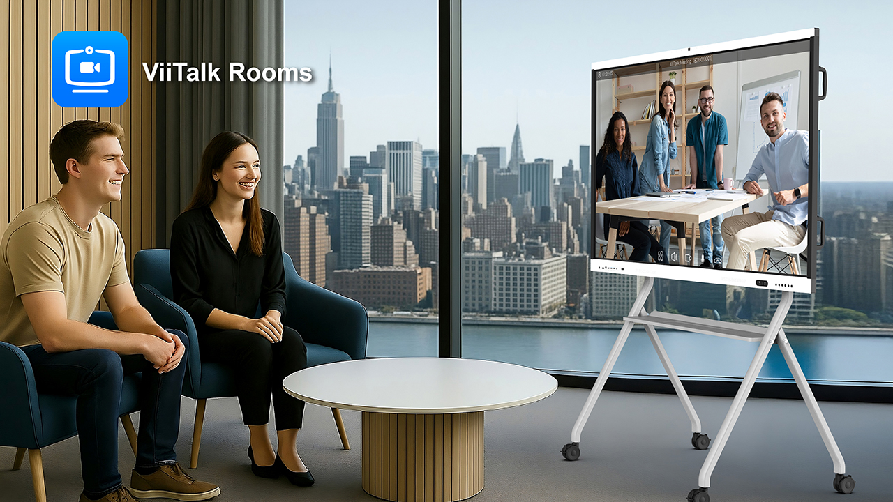 Built-in ViiTalk Rooms remote video conferencing system leverages efficient H.265 compression technology to deliver ultra-clear 4K video quality even over standard network conditions. This enables collaborator to host high-quality remote meetings and collaborate seamlessly without the limitations of distance.