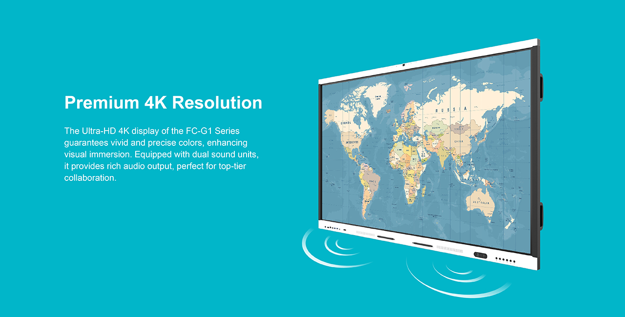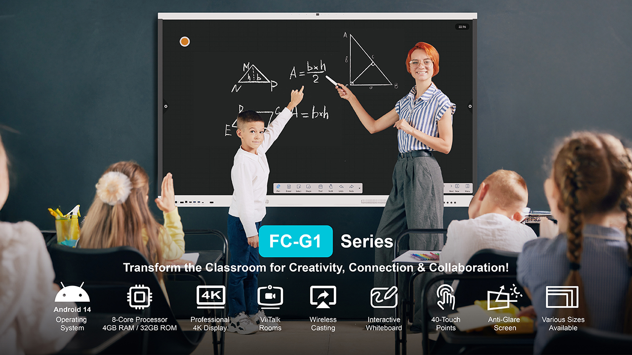 The FC-G1 Series is a cost-effective interactive flat panel designed for both remote collaboration and educational applications across a wide range of environments. It seamlessly integrates the ViiTalk Rooms 4K remote conferencing system, supports major third-party platforms, and enables efficient remote teaching and communication.