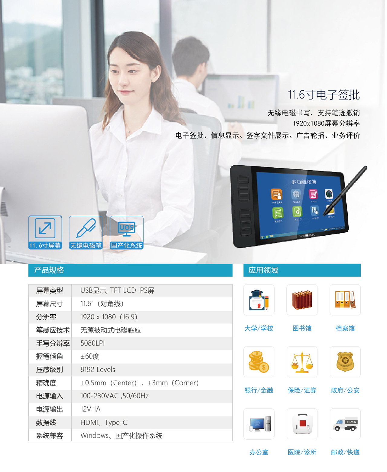 维山-MS1106-电子签批手写屏11.6寸(适配国产化操作系统-)